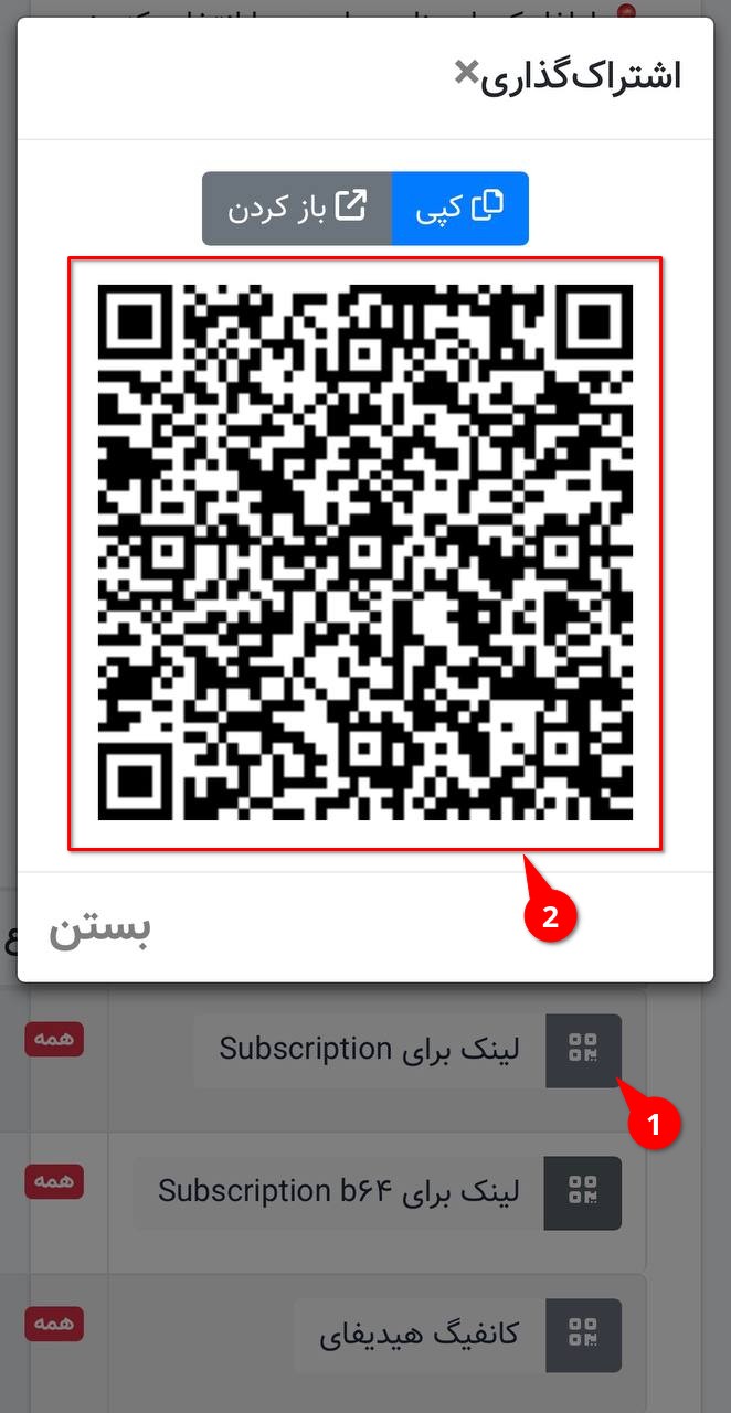 گرفتن لینک یا QR از پنل سرویسدهنده
