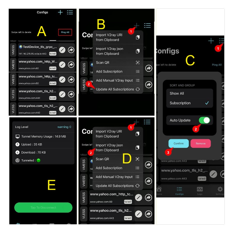 جایگزین: اگر از subscription استفاده میکنی و دوست نداری هر بار دستی ایمپورت کنی، بعضی پنلها گزینهٔ Auto-update یا اضافه کردن subscription URL به صورت دائم دارن تا کانفیگها خودکار آپدیت شوند.